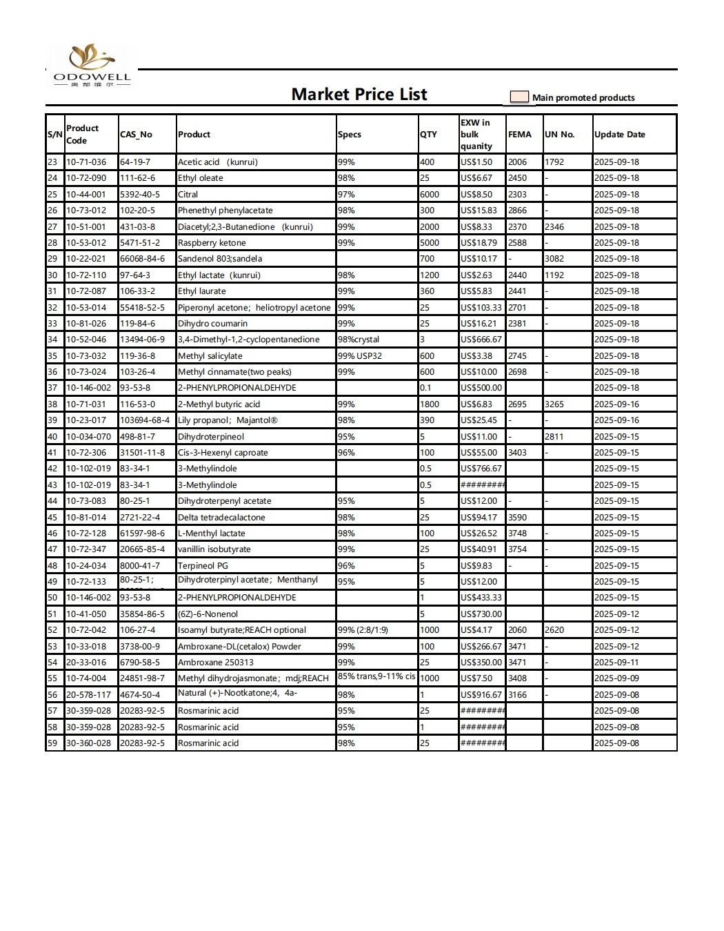 Прайс-список Odowell на ринку-2015.8.27-2025.09.29