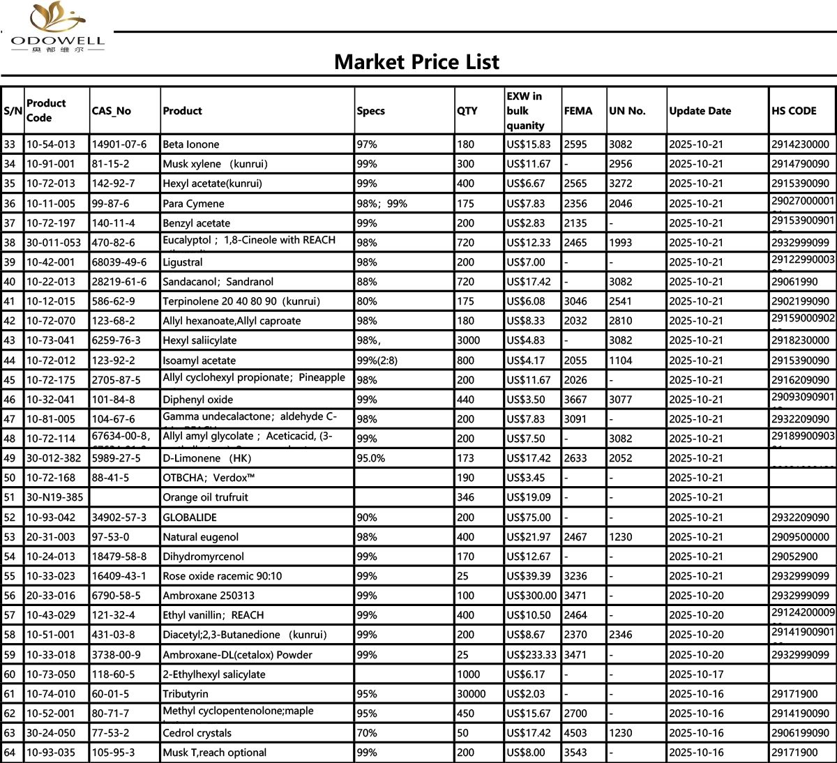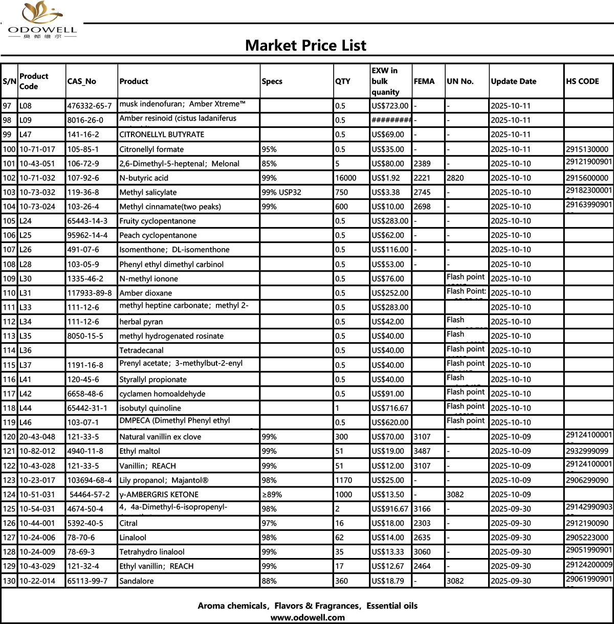 Прайс-лист Odowell-Market-2025.9.30-2025.10.24
