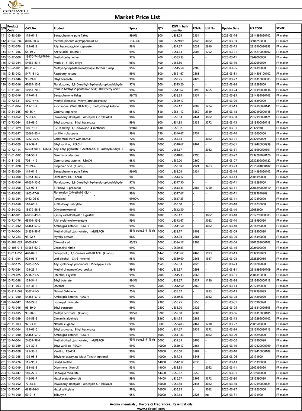 Прайс-лист Odowell-Market-2026.3.1-2026.3.31